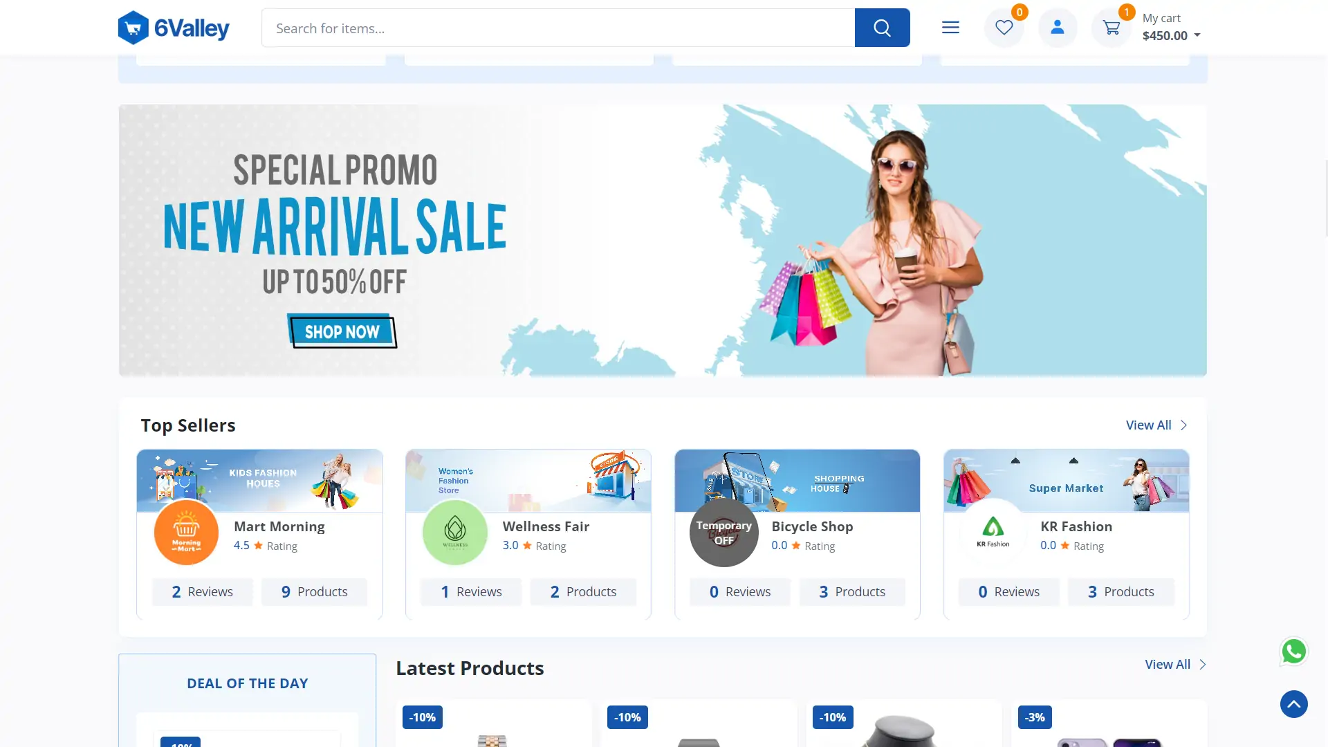 6Valley is a modern and flexible multi-vendor e-commerce system where you can organize multiple shops and stores such as digital stores, fashion stores, sports stores, home & living stores, health & beauty stores, and many others in one platform. In simple words, you’ll get All Things Under One Roof!