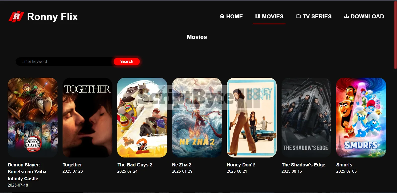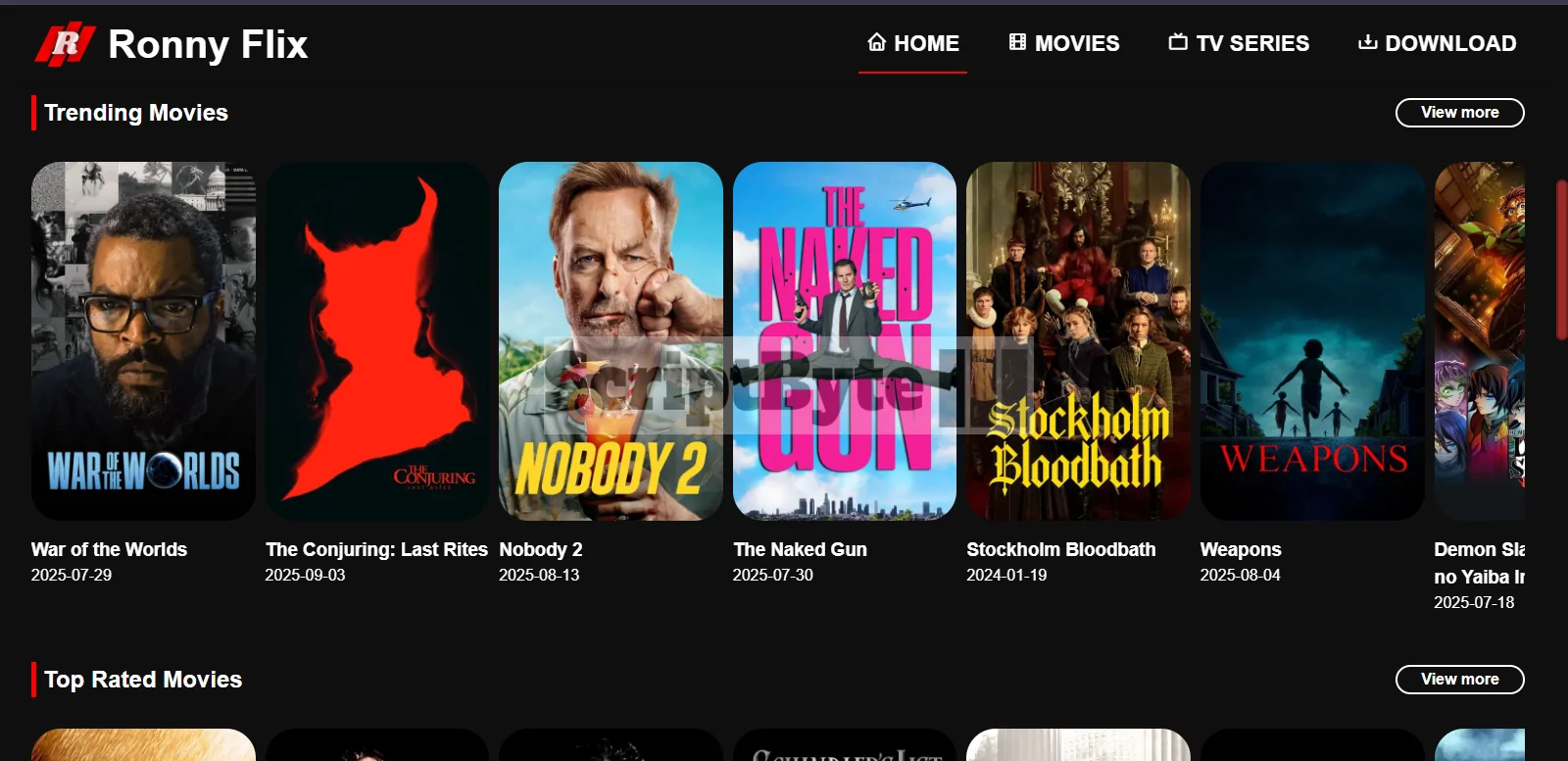 Ronnyflix is a movie/series/anime site its responsive site
