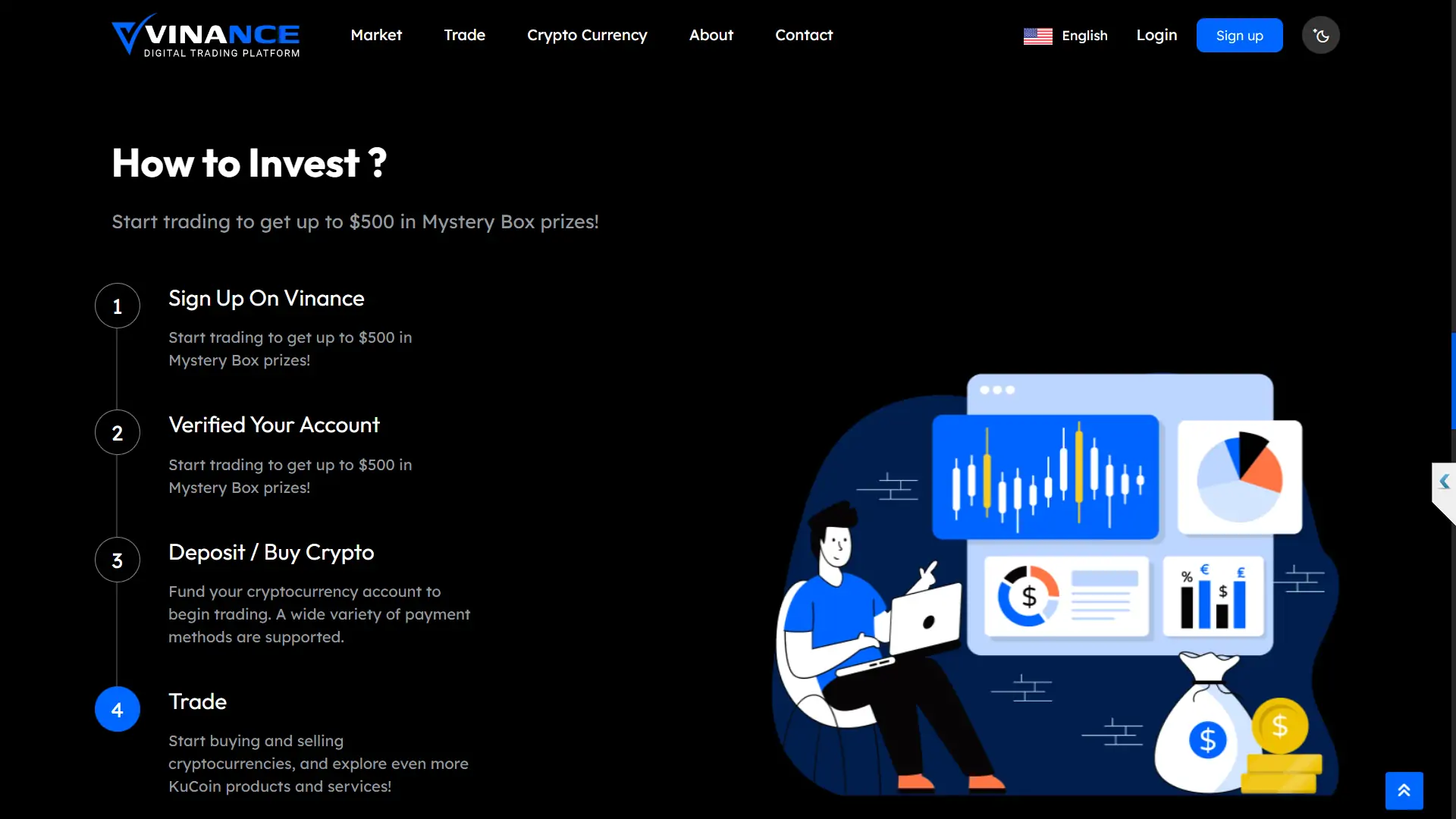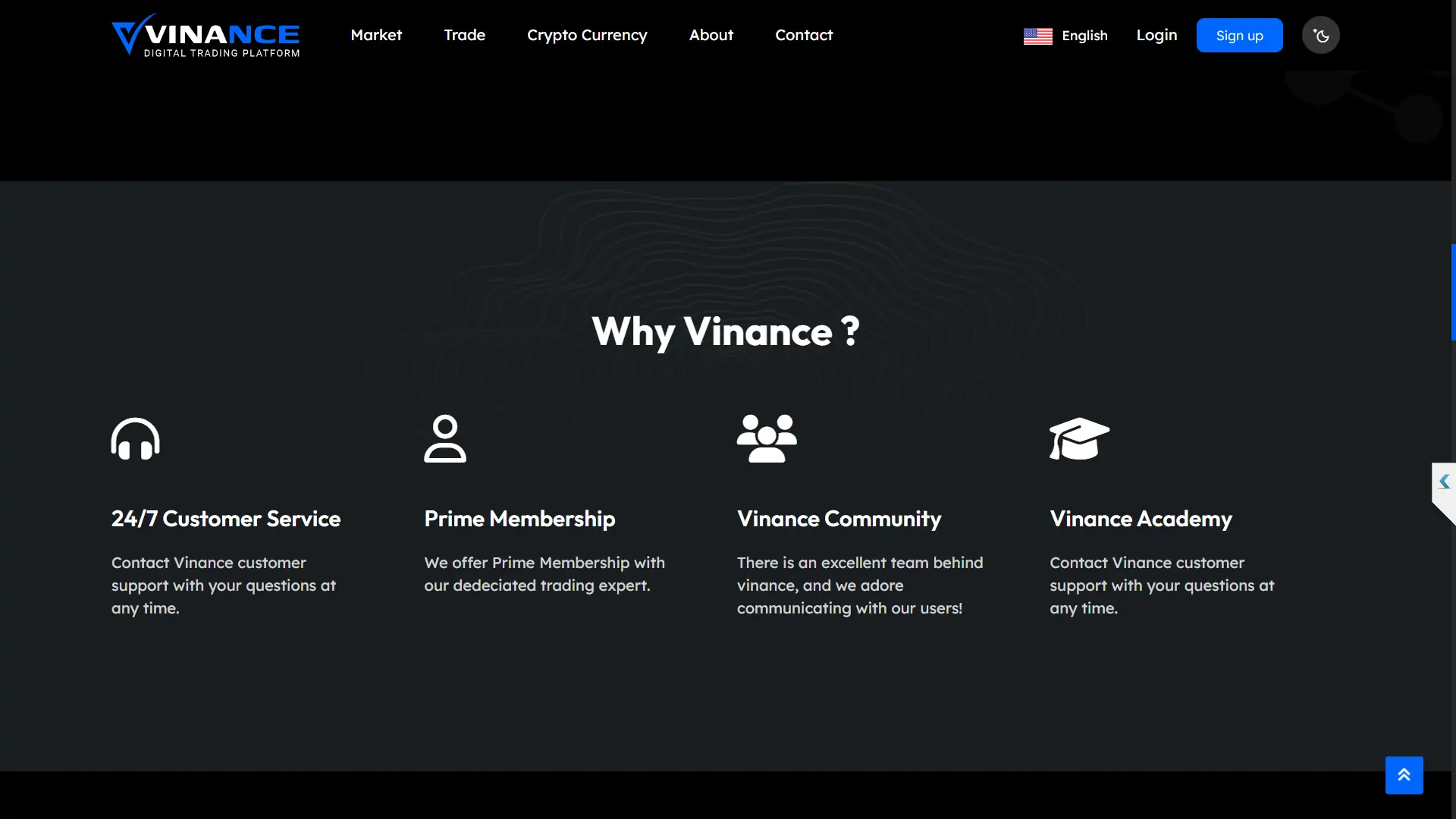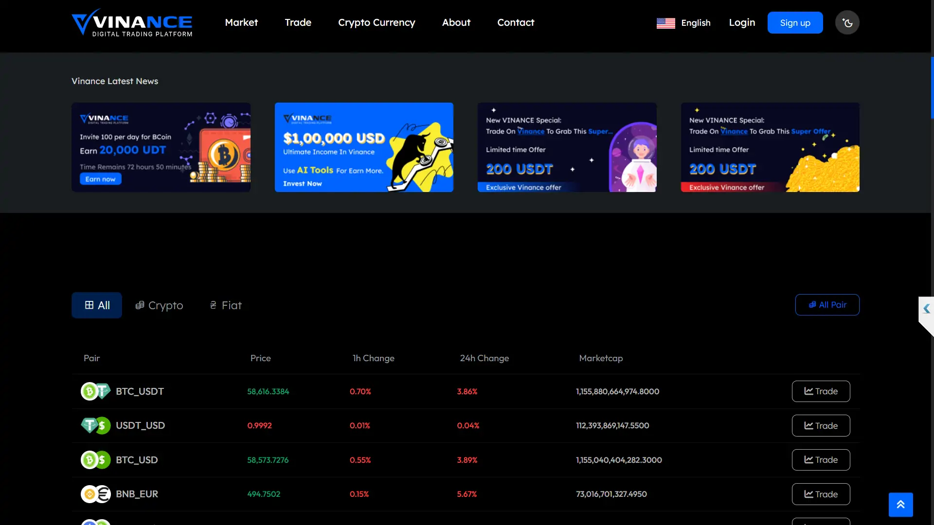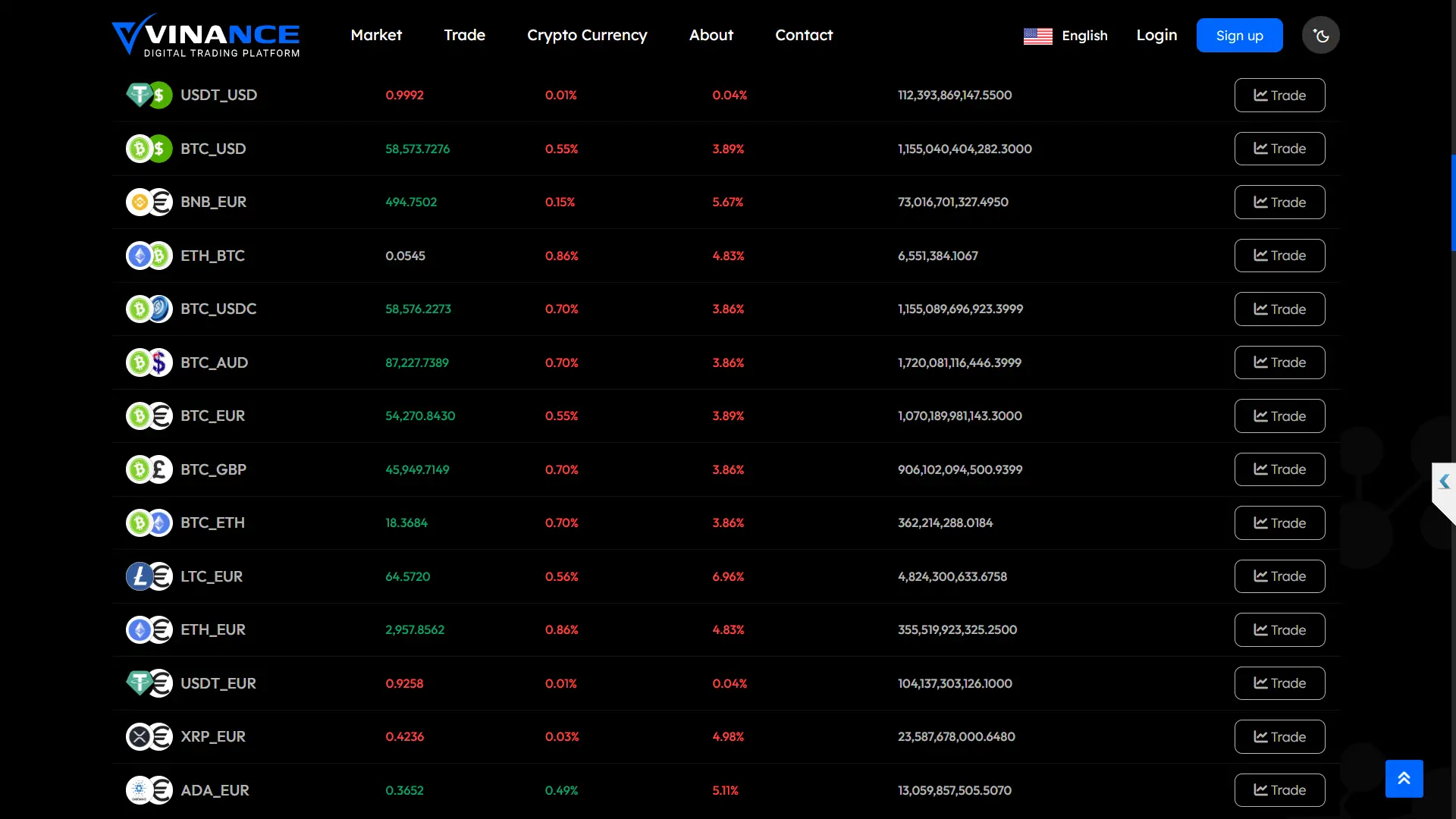 Our platform boasts a dynamic and ever-evolving trading system that keeps the excitement alive. Vinance ensures real-time cryptocurrency data, real-time trading, a dynamic & elegant wallet system, easy order & trade management, simple deposit system with a lot of payment gateways including copayments, NOWPayments, PayPal, Stripe & more. Share the excitement with friends and family and watch your rewards multiply! Our Multi-Level Referral System ensures that everyone benefits from spreading the trading. Your convenience is our priority. Vinance user-friendly interface ensures easy navigation, while the responsive and elegant design guarantees a seamless experience across all devices. Safety and security are at the heart of Vinance. Our advanced Two-Factor Authentication System ensures your account remains protected at all times, giving you peace of mind. Connecting to Vinance is a breeze with our Social Login System. Link your favorite social media accounts, and you’re ready to dive into the world of thrilling trading platforms.